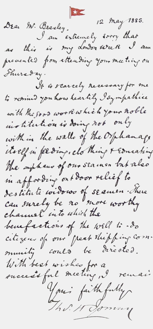 Permit me to add that you would confer upon us, and upon many others in this community, an additional favour, if you would kindly consent to sit for your portrait, to be placed in the dining hall of the orphanage. Signed on behalf of the committee and friends of the institution. James Beazley. Chairman of executive committee and treasurer. Edward Stubbs, Capt. R.N. Secretary. Liverpool May 3, 1879.