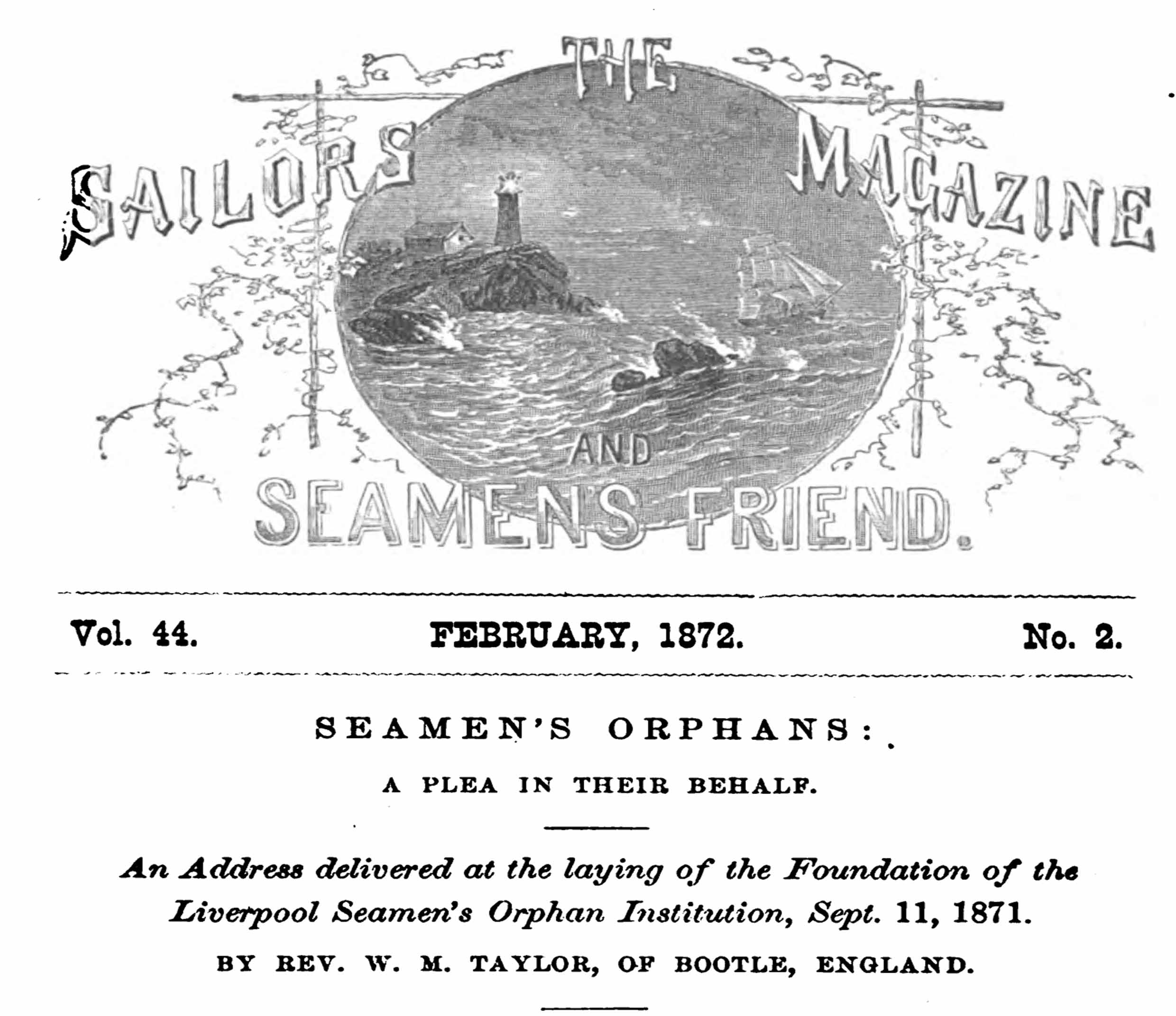 1868 December 16. Meeting in Mercantile Marine Association Rooms, to consider expediency of establishing an Institution to provide for the needs of the Orphaned children of Seafaring men.