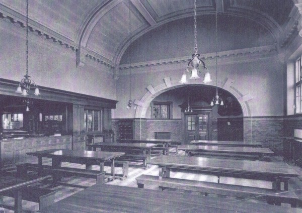 On each side of the doorways their are two alchoves - one of which will be reserved for a bust of Mr. Carnegie. The wing on the left is the boys and girls' reading room (55 ft by 26 ft); the right wing is the general reading room (66 ft by 30 ft inelusive of bays), whilst the centre of the building is reserved for the public lending library, book storage space and a librarians room. The ladies room (30 ft by 20 ft), with seperate entrance from Lister Drive, is quaint and tasteful in design, the building had two storeys and a basement.
