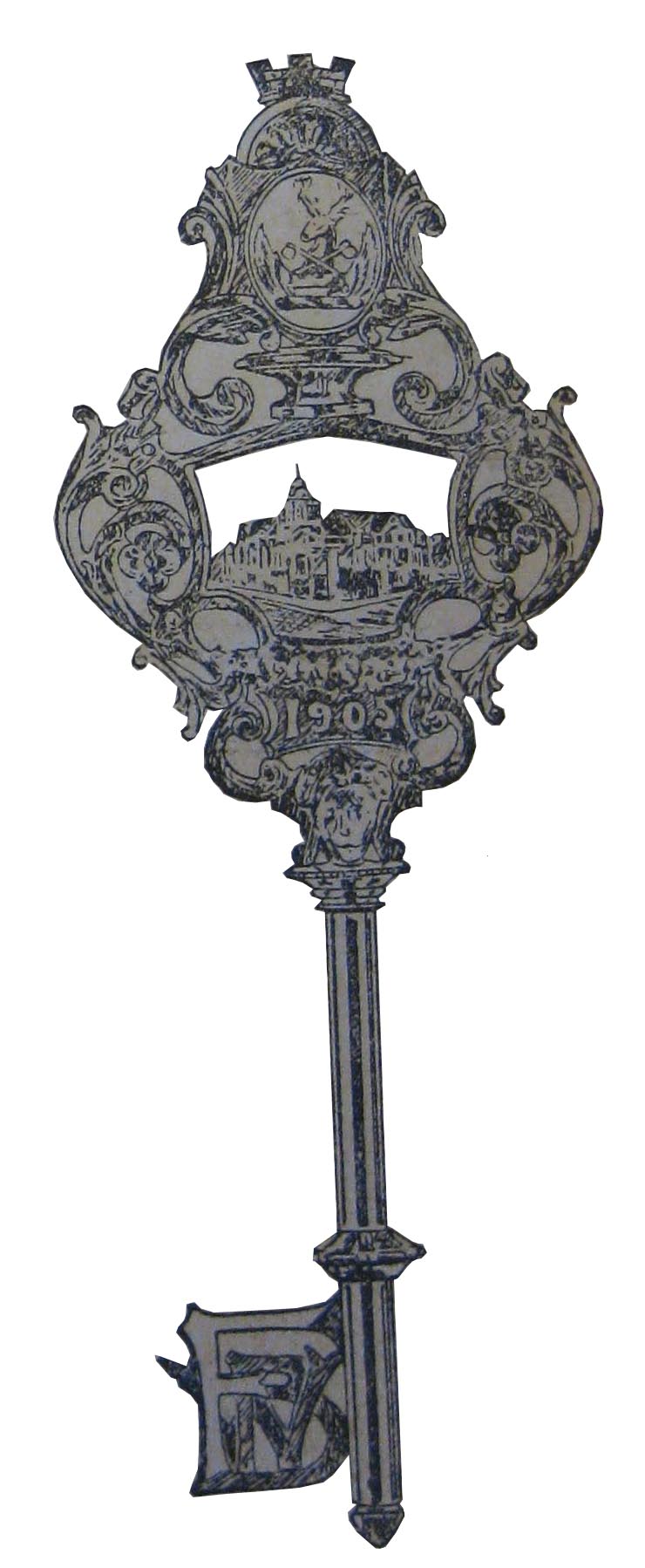 DESCRIPTION OF KEY PRESENTED TO SIR W. B. FORWOOD ON HIS OPENING OF THE WEST DERBY ANDREW CARNEGIE LIBRARY.