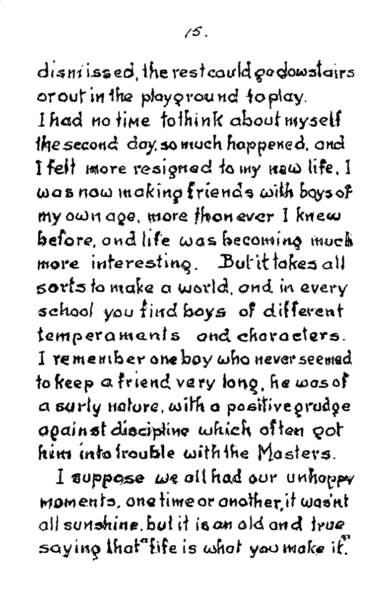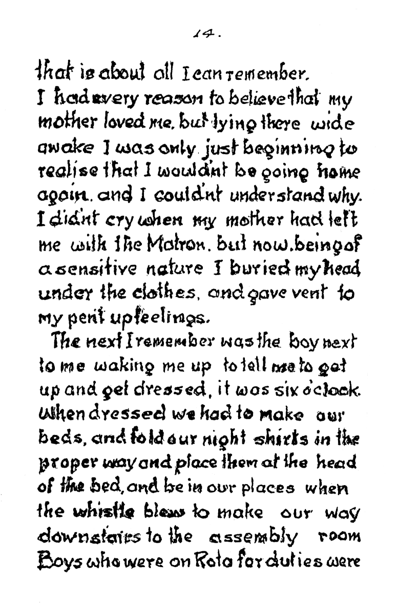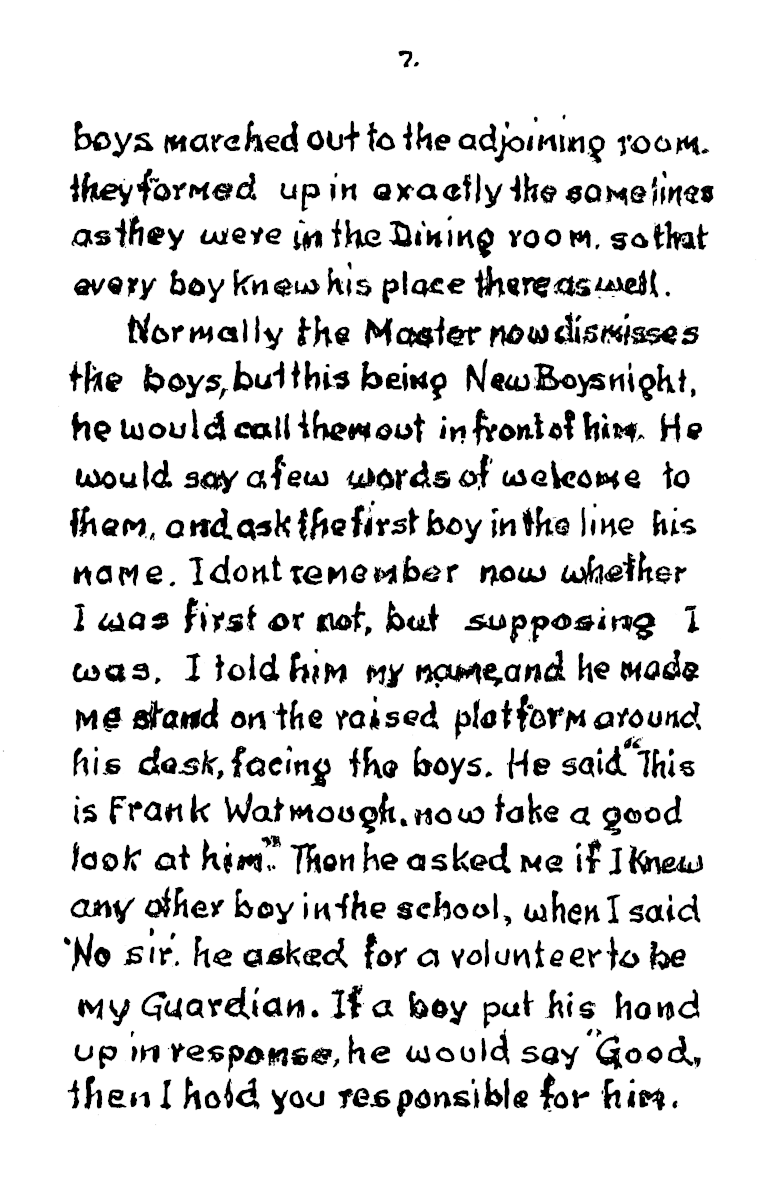 When he reached 90 in 1986 Frank wrote a 70 page account of his life at the Orphanage for his two grandsons, under the title “Granddads’ Schooldays.”