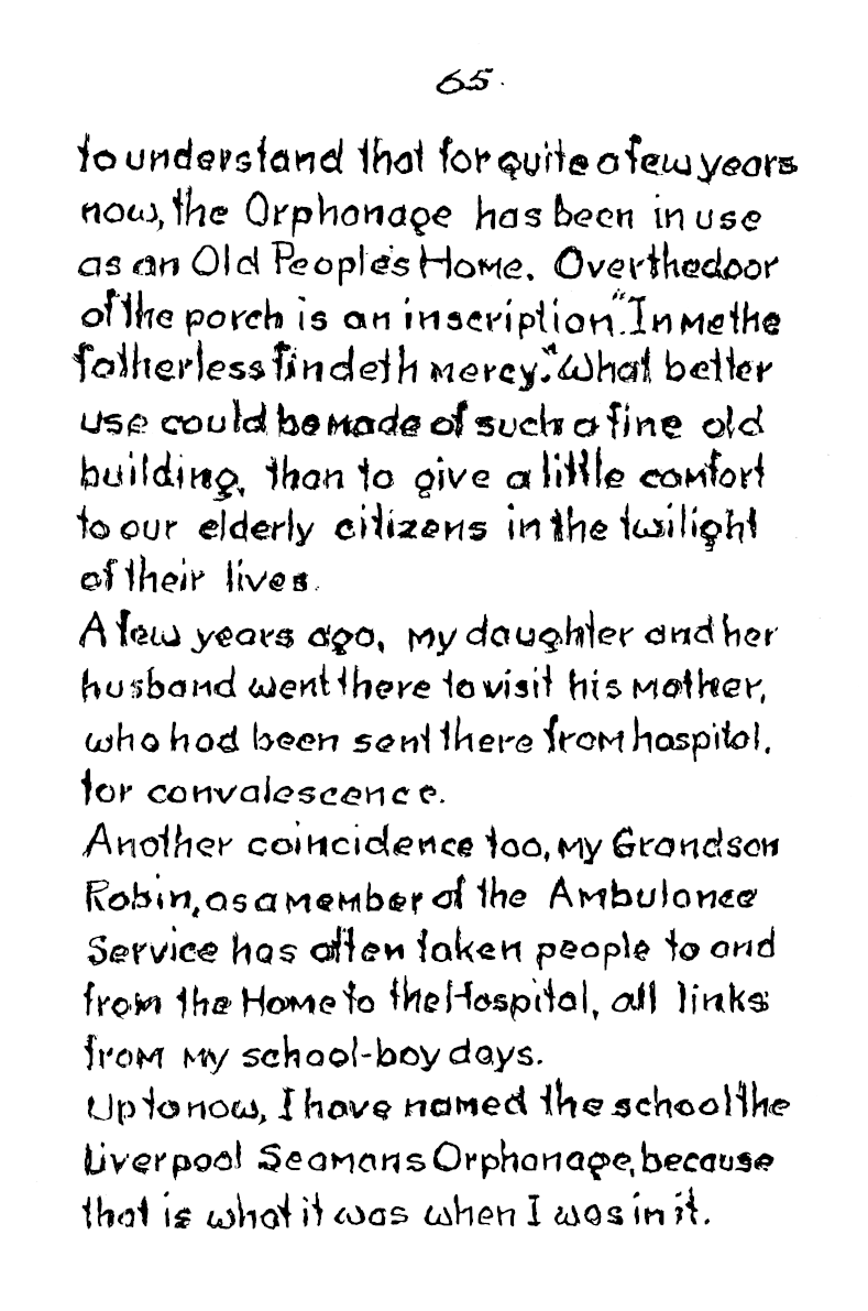 Sadly Frank is no longer with us but his story lives on. With thanks to Robin and Doris who is Franks Daughter for allowing us to use “Granddad’s Schooldays.” In the building that later came on to become titled The Royal Liverpool Seaman’s Orphanage Institution.